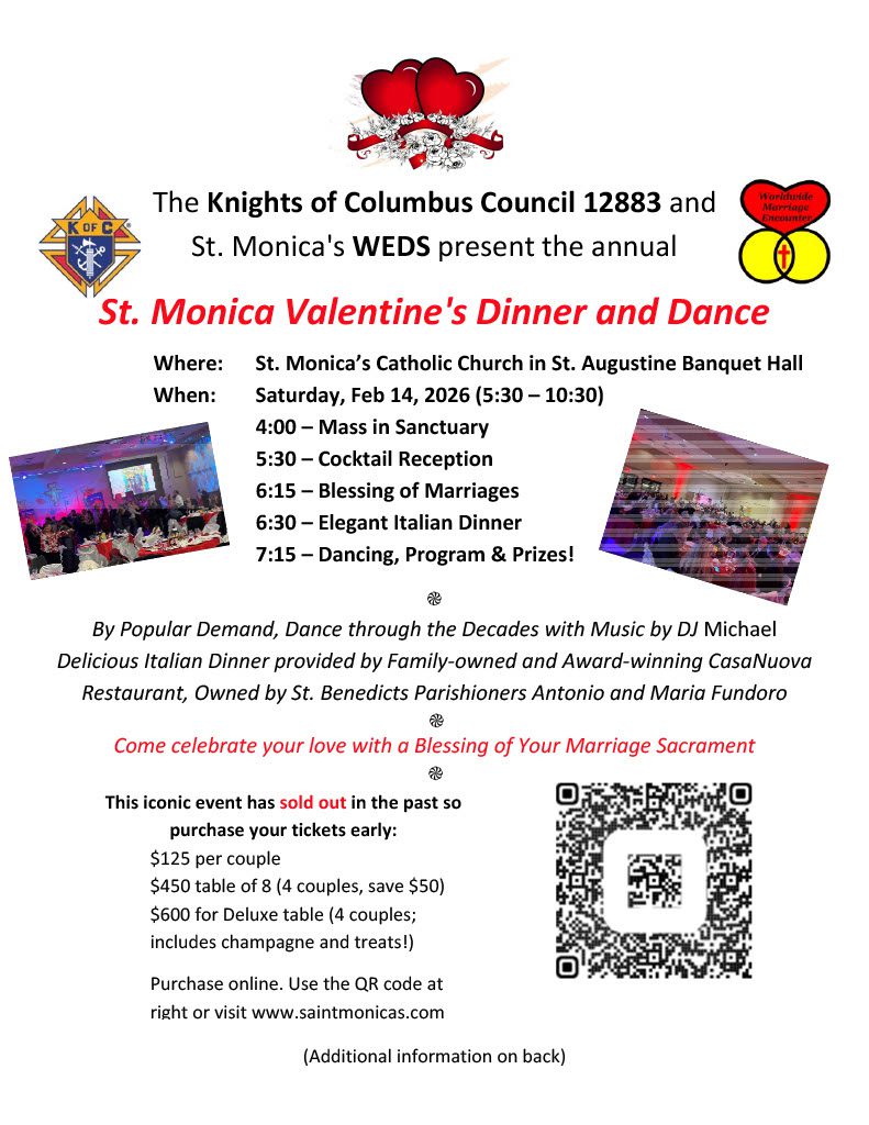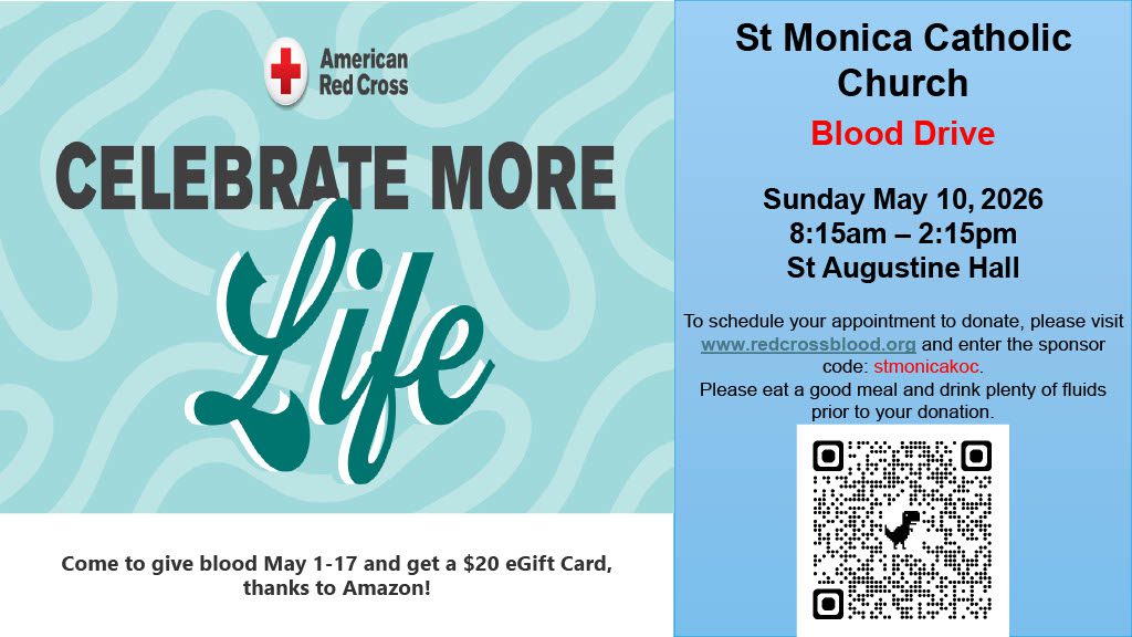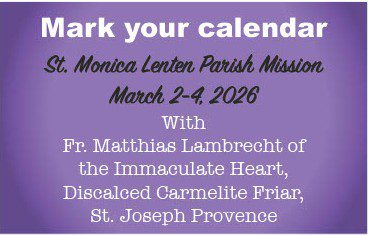 Welcome to the website for The Catholic Church of Saint Monica. We seek Christ and give witness to him through our worship, formation in the faith, moral life, and prayer.