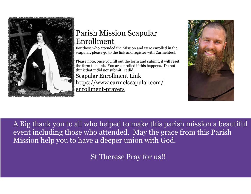 Disciples dedicated to on-going conversion, formation in the word, evangelization and missionary work, we, as families and individuals, hope to be light and leaven in our community through our rich faith and evident charity.